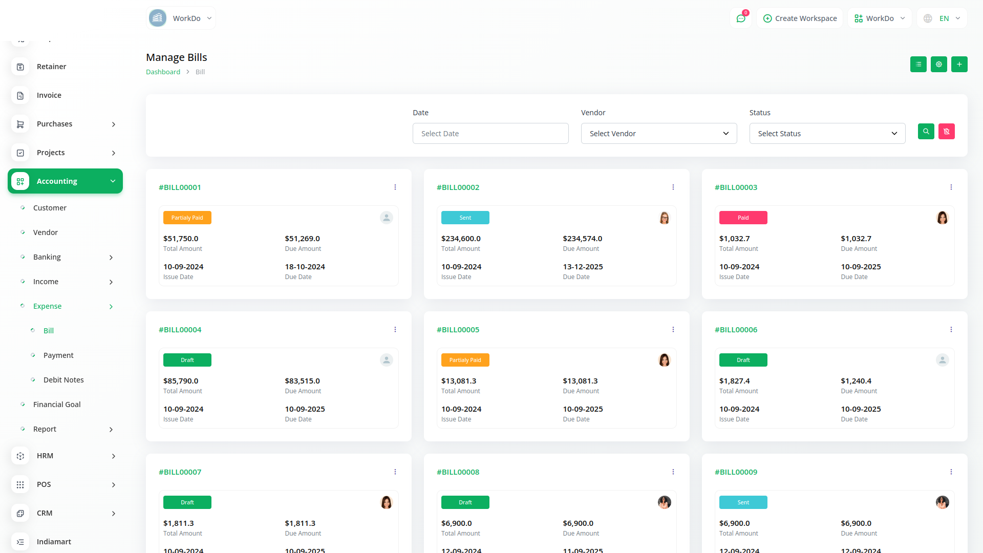 A budget is a financial plan for a specified period to keep in check with the working capital. This feature here helps to maintain the capital flow. You can set monthly, quarterly, half-yearly, or yearly budgets according to your business plans and needs. The main categories are “Income” and “Expense” where one can edit /update /delete the sub-categories as well.