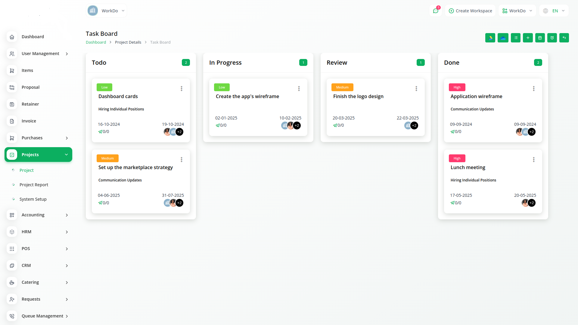 Got a big team or working on multiple projects at once? Manage task priorities or even create additional workspaces and use the built-in permission system to separate core projects. Make your team more effective by helping them avoid confusion ensuring they always know what to focus on.